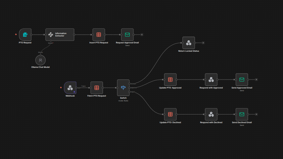 With TimeOFF, employees can easily submit requests, while managers can quickly approve or decline them, all while everyone receives email notifications to stay informed. Below is a diagram showing the workflow logic, but as a user, you never have to worry about the details. Everything happens through simple forms and email communication.